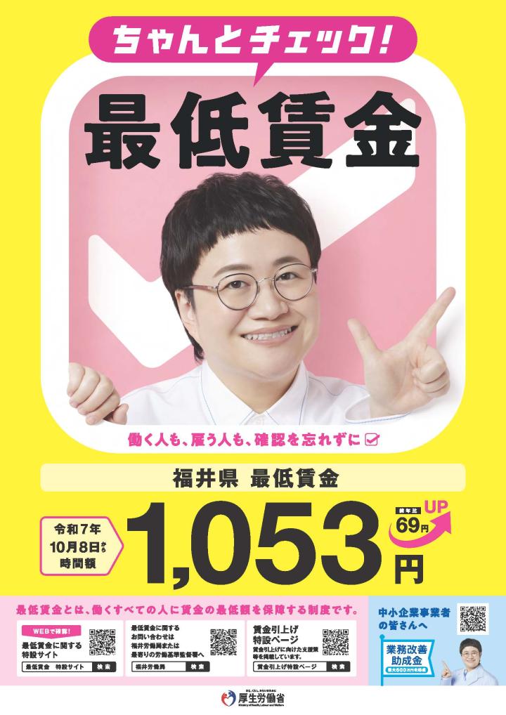 福井県最低賃金の改正については、令和7年9月8日に公示されました。