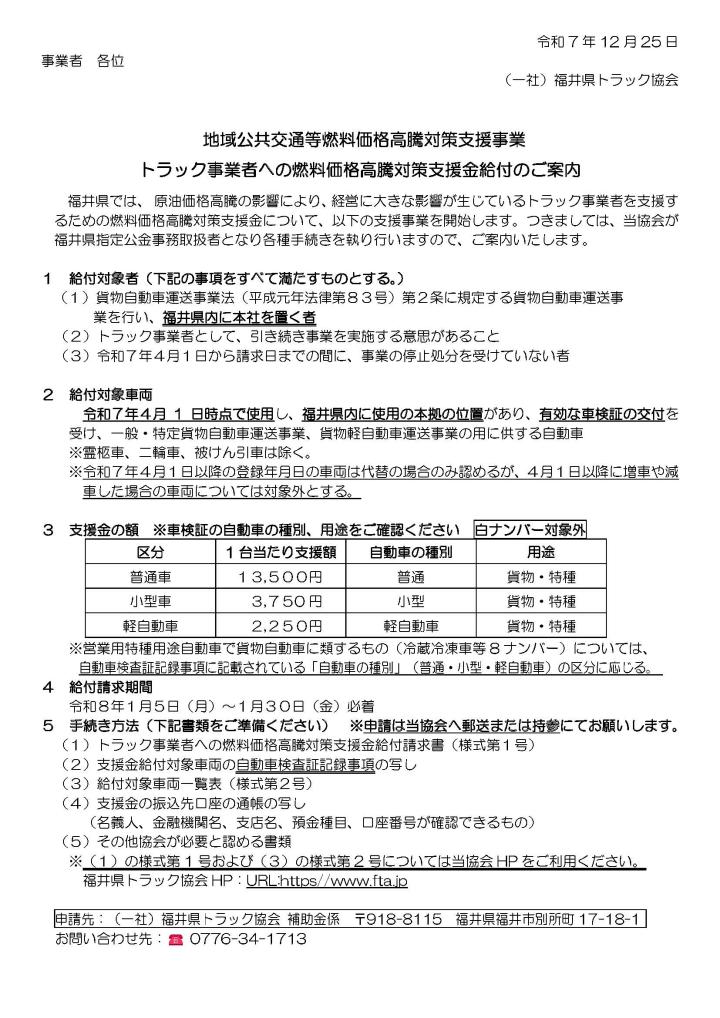 2025.12.25 助成金関係 福井県トラック協会