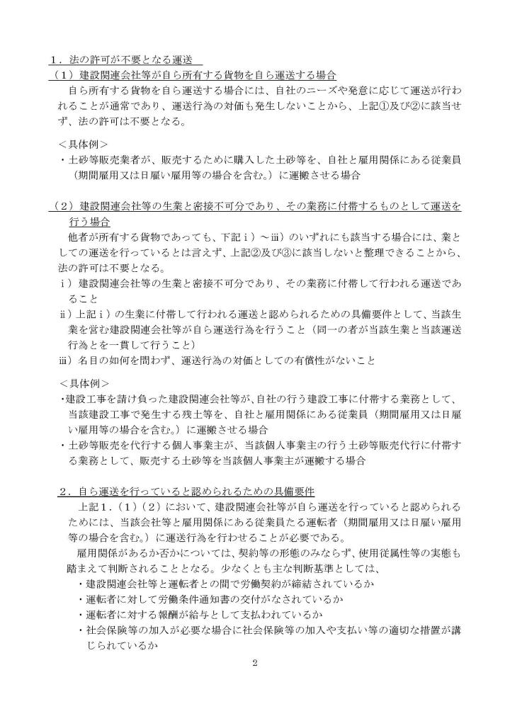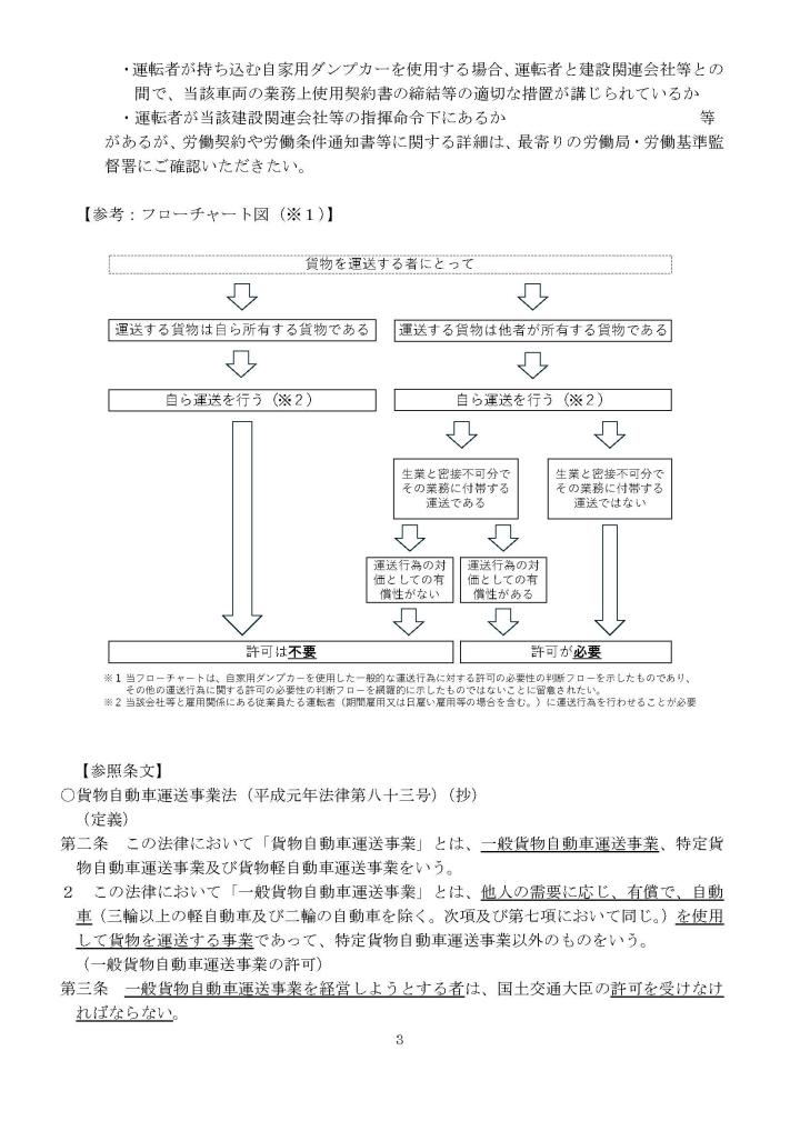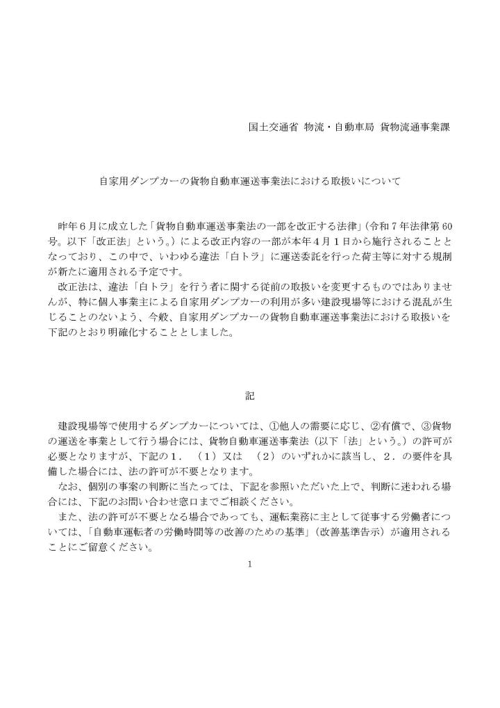 自家用ダンプカーの貨物自動車運送事業法における取扱いについて
